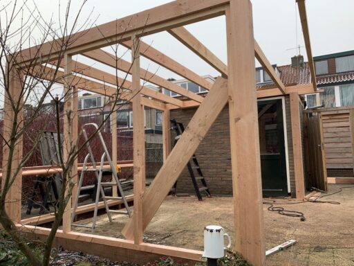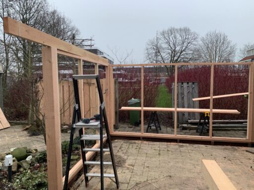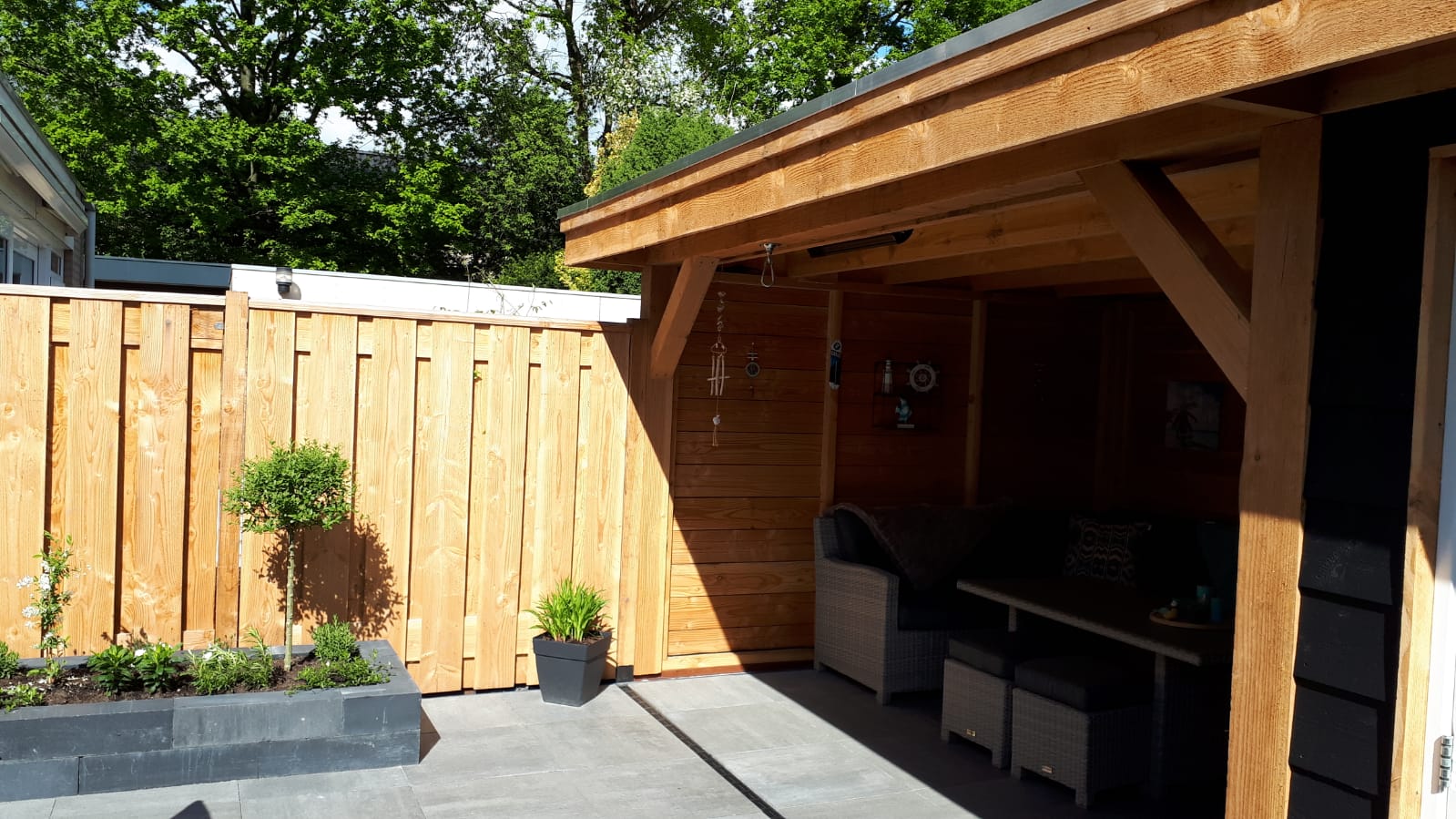 Afgelopen week een overkapping geplaatst aan bestaande schuur,de overkapping is gemaakt van douglas hout en het dak is van EPDM.