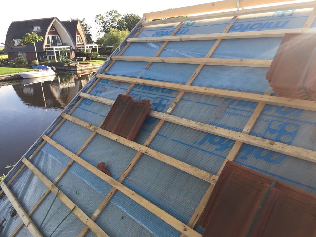 plaatsen van pannen dak