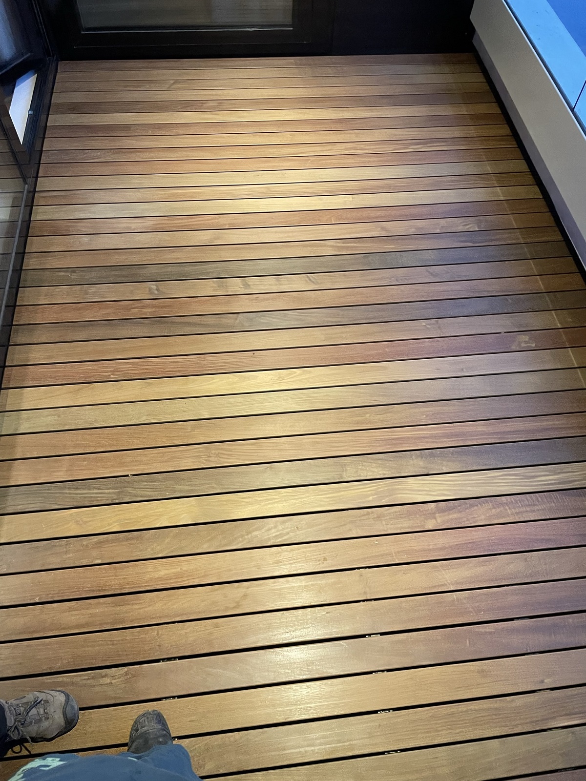 afgelopen week een geplaatst in een appartementen complex de Pontsteiger in Amsterdam , de planken van de vlonder zijn van Ipé hardhout 21 x90 mm. deze planken hebben aan beide zijden een sleuf gefreesd t.b.v. montage clips zodat je geen schroeven ziet .