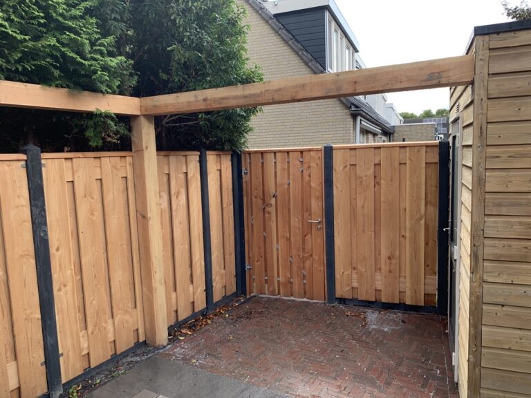 Schuur, pergola’s , overkapping en schutting geplaatst woerden