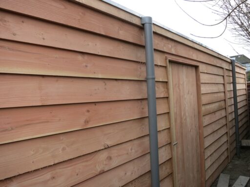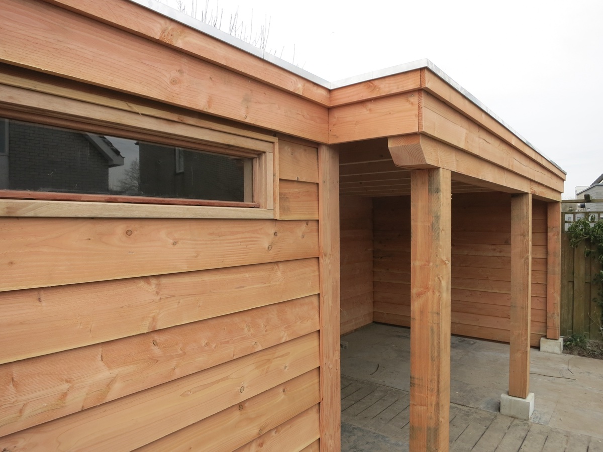Dit houten Douglas buitenverblijf is gemaakt in combinatie met een berging. De berging is voorzien van een hardhouten raamkozijn, het dak is beplakt met EPDM.