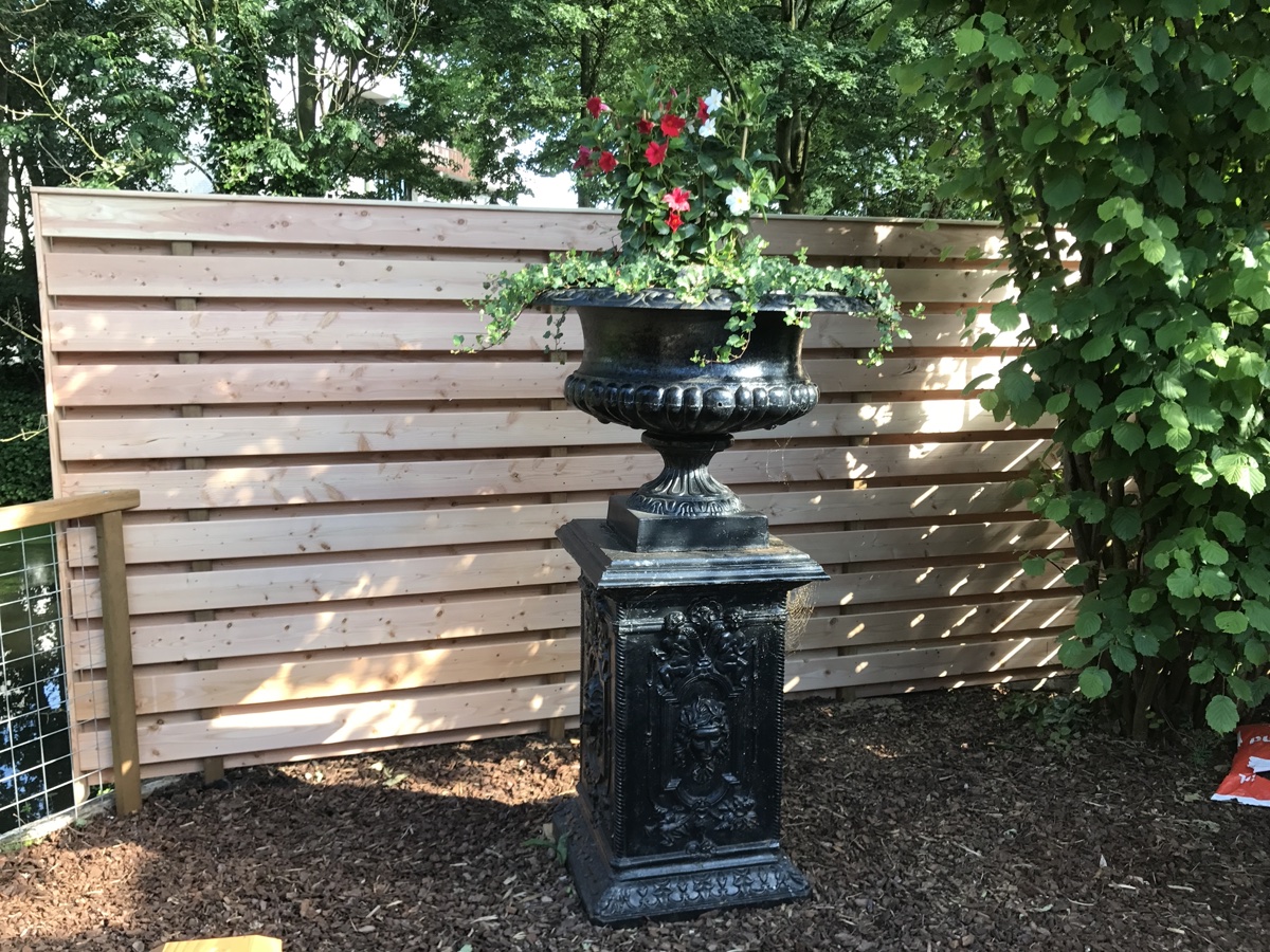 Afgelopen week hebben wij in Cappelle a/d IJssel een Douglas houten schutting geplaatst met een hekwerk van verzinkt gaas en een Douglas houten hekwerk op het einde van het terras. De bewoners wilden meer privacy en een hekwerk voor de veiligheid van de kinderen.