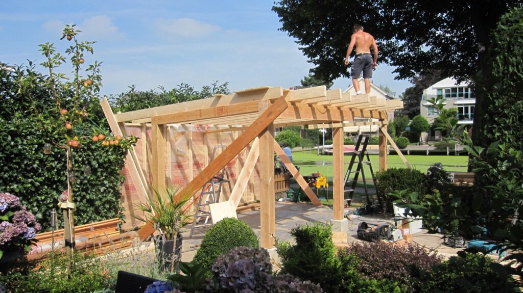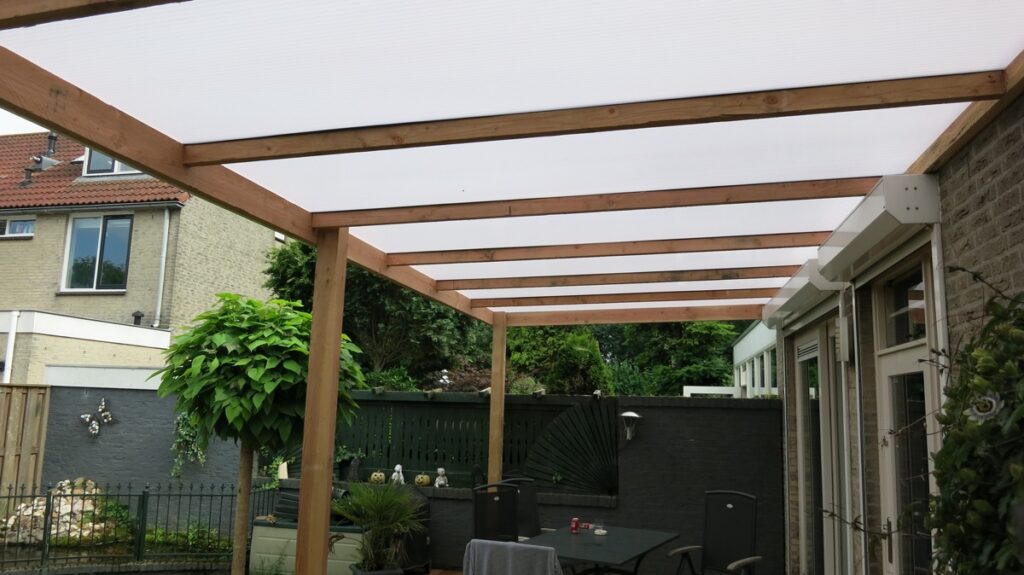 Overkapping Afgelopen week in Uithoorn een overkapping geplaatst van douglas hout boven een eerder geplaatste vlonder Nadat het geplaatst was…