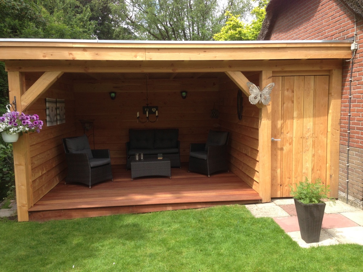 Een buitenverblijf of luxe tuinhuis dient naast zithoek ook als overkapping voor uw kluswerkzaamheden of hobby.