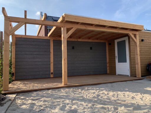 Overkapping met Pergola Afgelopen week een overkapping met pergola geplaatst in Gouda. Zowel de overkapping en de pergola zijn gemaakt…