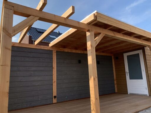 Onze klanten kiezen voor een overkapping op maat in de meeste gevallen voor hout. Wij werken met houten palen van het merk Douglas of van geïmpregneerd vurenhout.