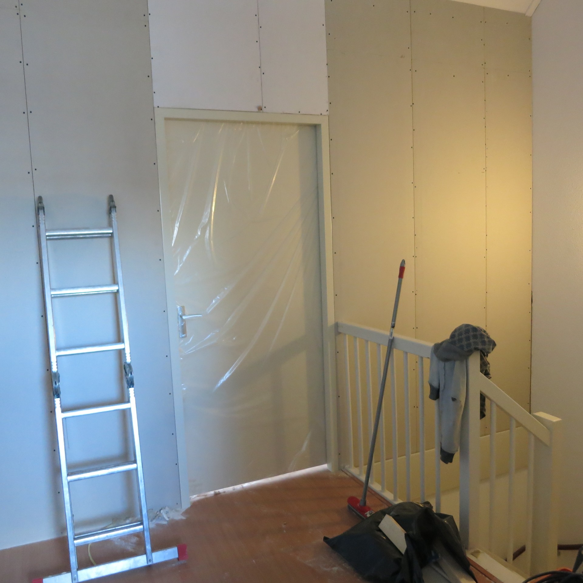 Bij renovaties gebruiken wij vrijwel altijd gipskartonplaten die we bevestigen op een metalen constructie (metal stud wand). Dit is een stevige oplossing waarmee we onzuivere en kromme muren volledig wegwerken.