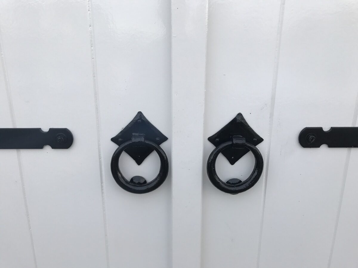Om de dubbelen deuren een klassieke look te geven heb ik groeven in de buitenkant gevreesd , en de deuren voorzien smeed ijzeren hang en sluit werk.