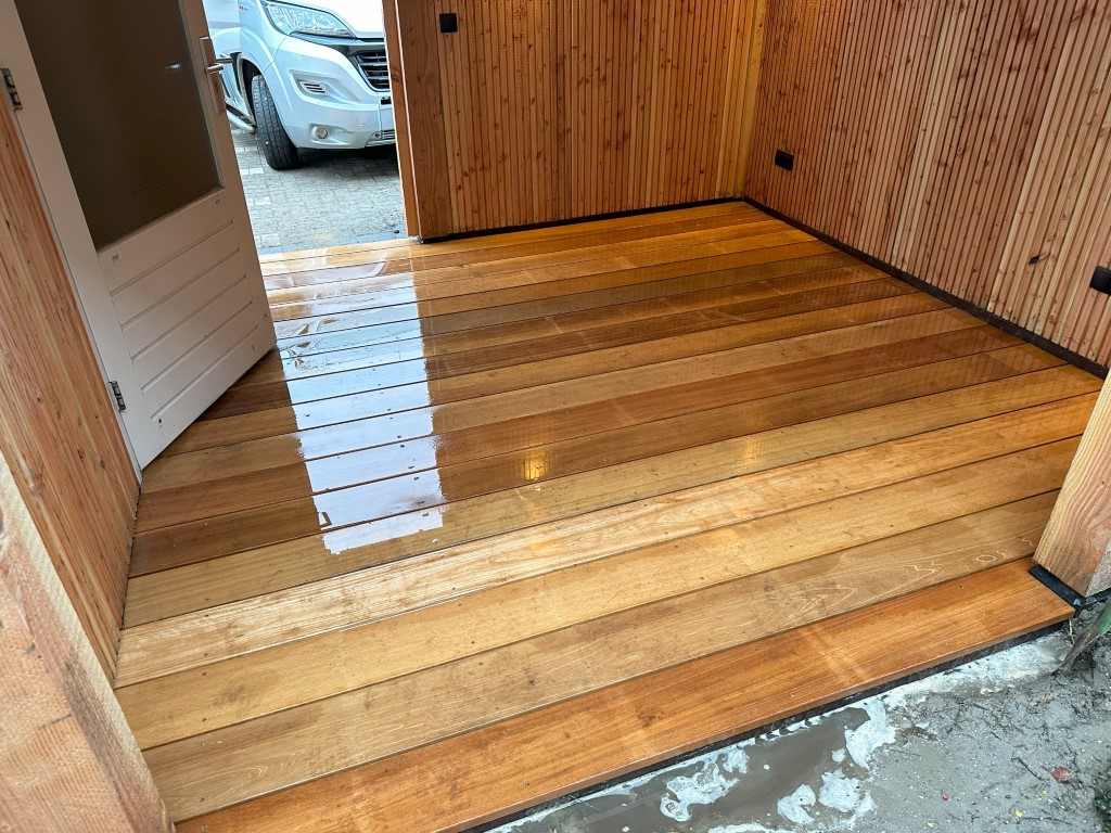 Een van onze recente projecten was het bouwen van een overkapping in Berkel en Rodenrijs. We hebben deze gemaakt van douglas hout , glazen schuifdeuren voor de toegang naar de tuin, en een hardhouten vlonder van bankiray als vloer. Het dak is bedekt met epdm, een duurzaam en waterdicht materiaal. Het resultaat is een mooie en praktische overkapping waar je het hele jaar door van kunt genieten.