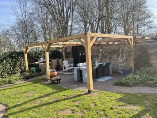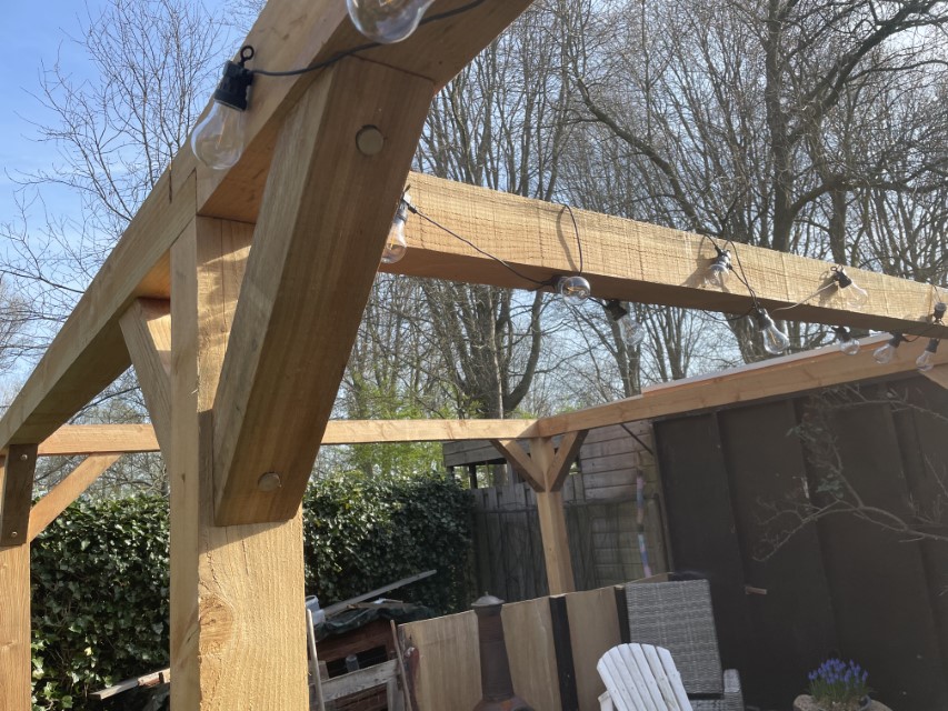Ook hebben wij in dezelfde tuin een pergola geplaats en is gemaakt van dezelfde douglas palen , de staanders staan op betonnen poeren.
