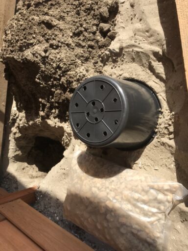 het dak is geplakt met EPDM en hemel water afvoer door middel van een grind put.