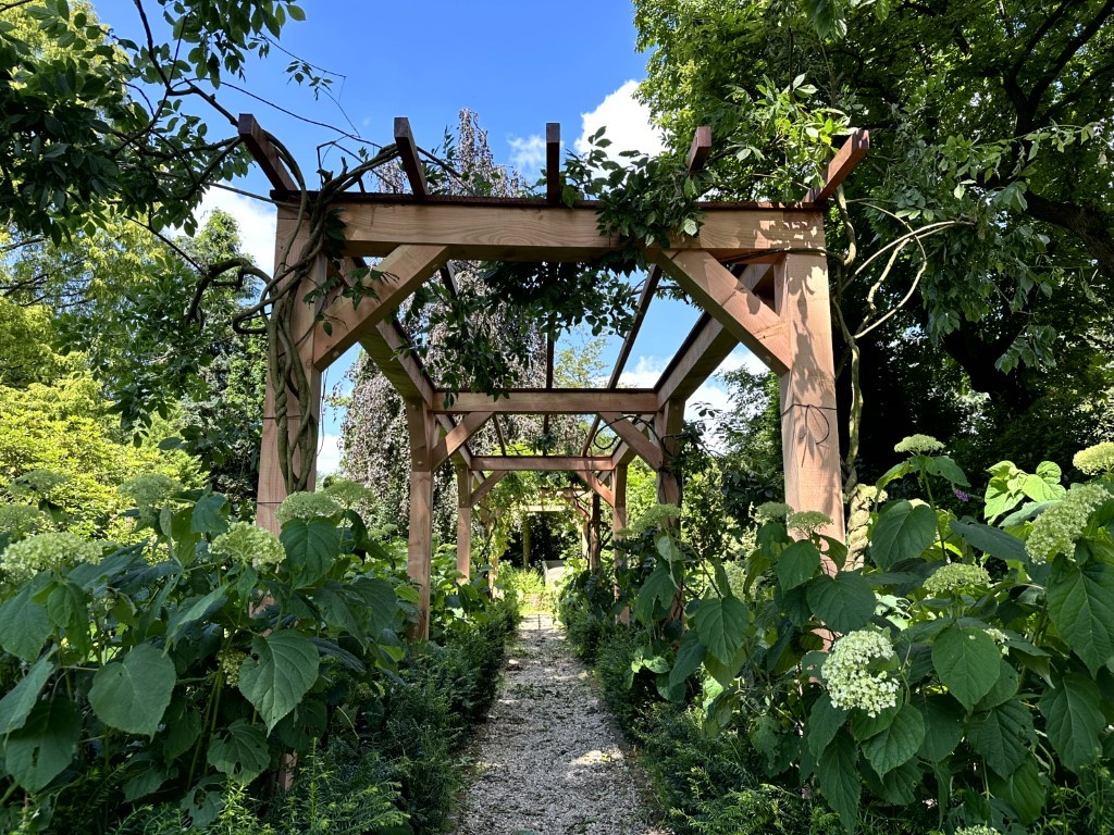 De klant had wel een verzoek om de bestaande klimop /beplanting te behouden. Daardoor moesten wij de oude pergola voorzichtig demonteren en de beplanting zoveel mogelijk takt te houden.