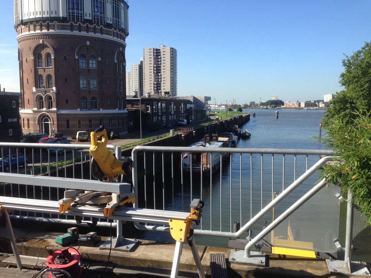 Voor Waterwerk Rotterdam plaatste Michel Potuyt deze 16 schuttingen met losse Red Cedar planken, bevestigd op hardhouten palen en geschroefd met RVS.