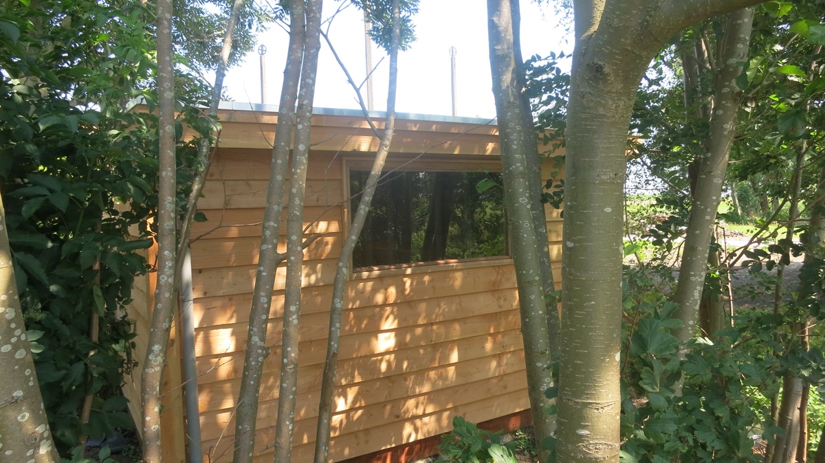 Deze schuur werd door MP Timmerbedrijf op maat gemaakt voor klanten in Woubrugge. Het frame is gemaakt van hardhout, de schuur en de dubbele schuurdeur zijn gemaakt van Douglas hout. Is het geen plaatje?!